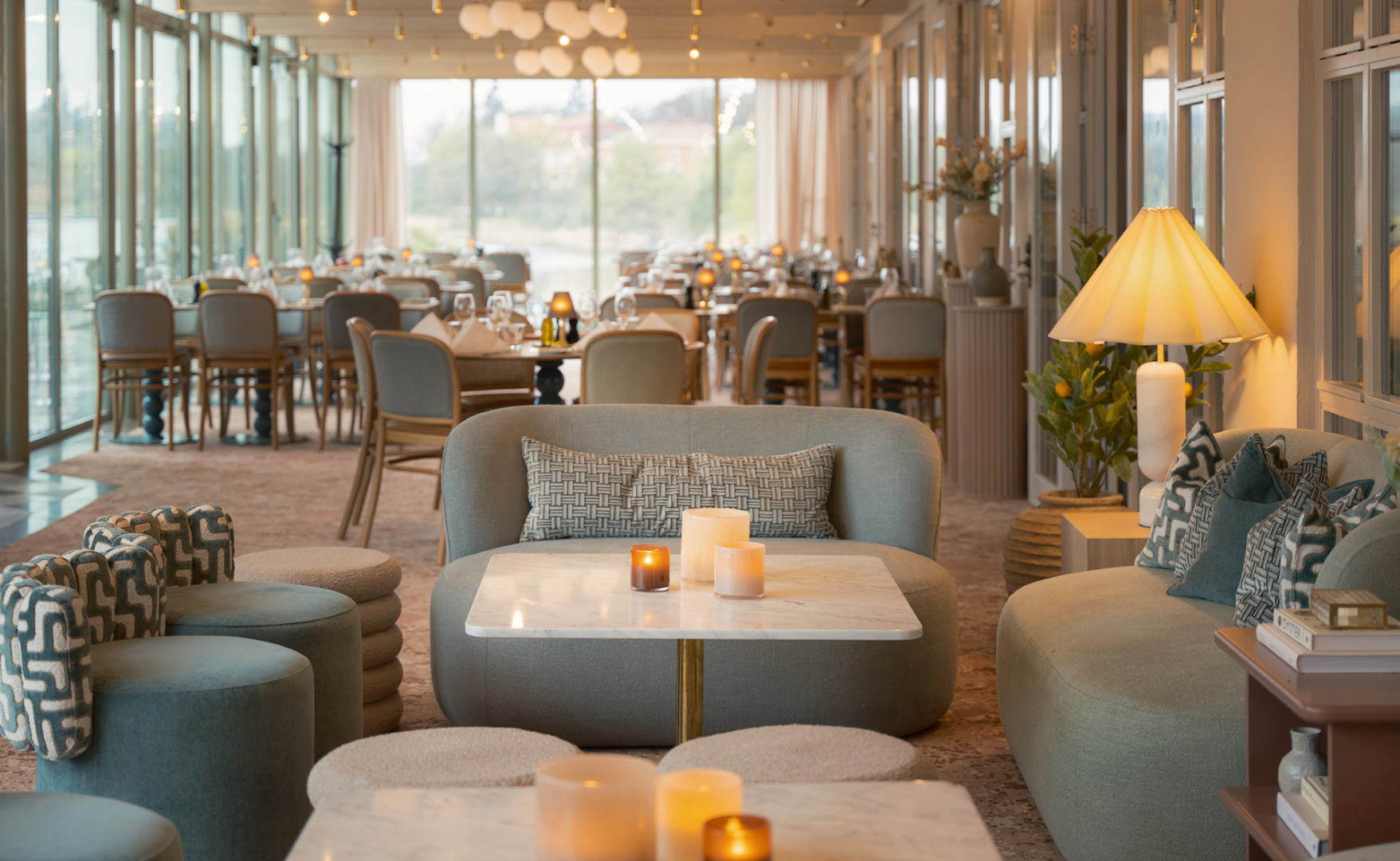 Our suite is 50 sqm large and is located upstairs with views in three directions. From the bedroom you look over the Djurgårdsbrunn canal and the Nordic Museum, and from the living room you have a wonderful view of the Embassies and Gärdet. The separate bedroom has a 180 cm King Size bed, a sofa group and a desk as well as two French balconies with views over the water. The living room has a table with chairs, a sofa and armchair - all pointing to the large panoramic window.